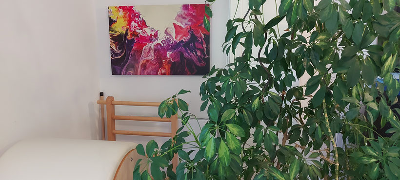 Kleingeräte, ergänzt durch einen schönen großen Spiegel. Eine Liege für Alexander-Technik Stunden ist auch vorhanden. Ein Wartebereich